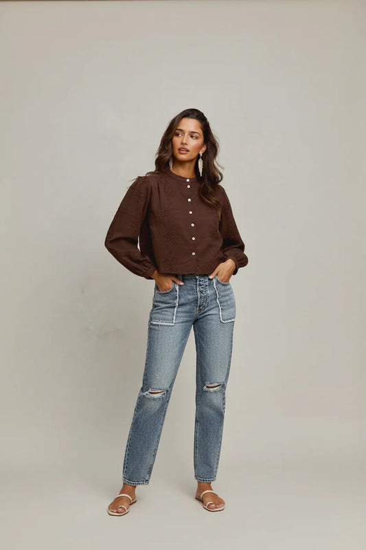 Chemise manches longues à broderies florales