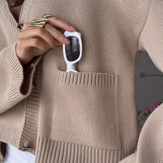 Cardigan en maille unie col V avec grandes poches pour femme