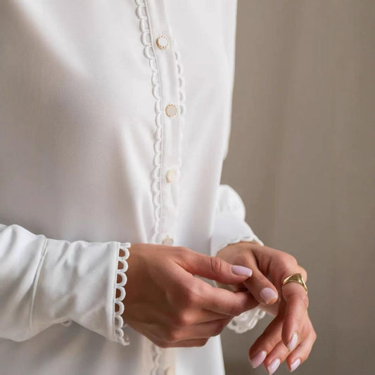 Blouse femme de créateur en dentelle blanche à manches longues